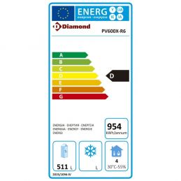 - Dim (LxPxH): 1250x690x2075mm - T°: -20°/-15°C - Étagères : 6 - Capacité: 964 L - Voltage: 230V / 50Hz - Réfrigérant : R290 - Puissance Frigorifique: 833 W - Consommation: 810 W (électrique)