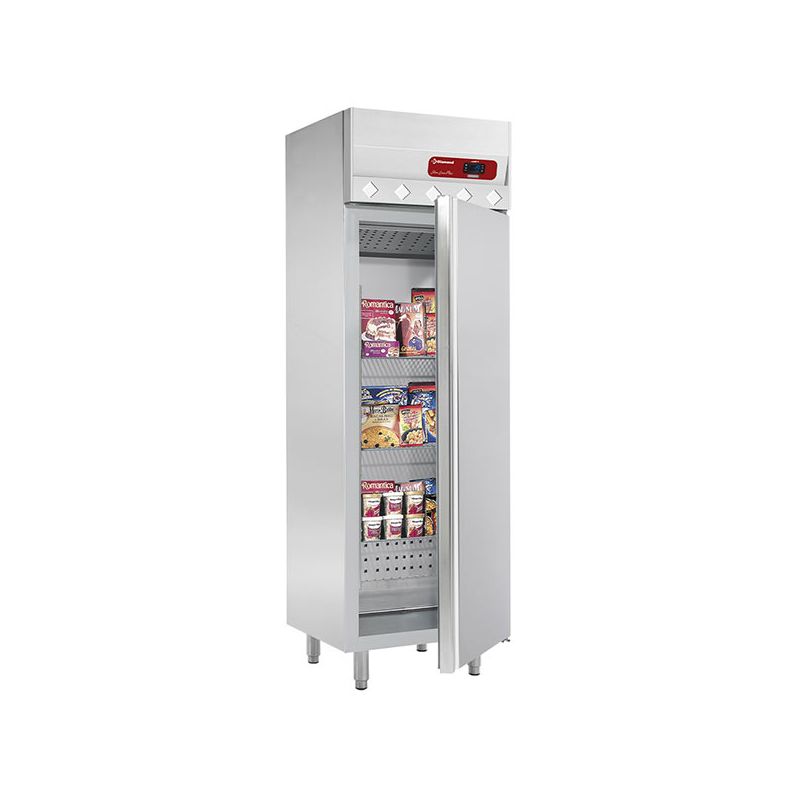 Dim(LxHxP): 460x2075x665mm - T° : -20°/-15°C - Étagères: 4 GN1/1 - Capacité: 303 L -Ensemble de diapositives 4 - Voltage : 230 V / 50 Hz - Puissance Frigorifique: 385W