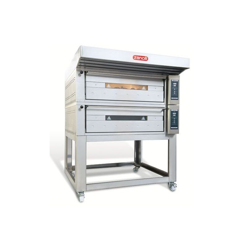 Idéal pour la boulangerie et la pâtisserie - Modèle avec fonction vapeur - Dimensions ext : 1170 x 1130 x 1665 mm - Dimensions int : 3x 845 x 825 x 300 mm - Capacité : 3x 2 plaques 400 x 600 mm - Température maximale : 350°C - Puissance : 12.8Kw - Tension : 400V 50Hz ~ 3N - Poids net : 780 kg - Armoire réchauffée et hotte en option