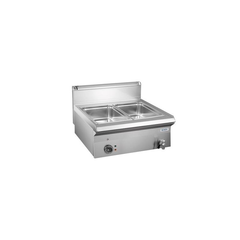 -Dim:660x540x220mm -Acier Inoxydable -2 robinets d’évacuation d’eau -Capacité 2 bacs GN 1/1 - 150 mm de profondeur -Thermostat réglable de 0°C à 90°C -Puissance:3000w -Tension:230V -Poids:19kg
