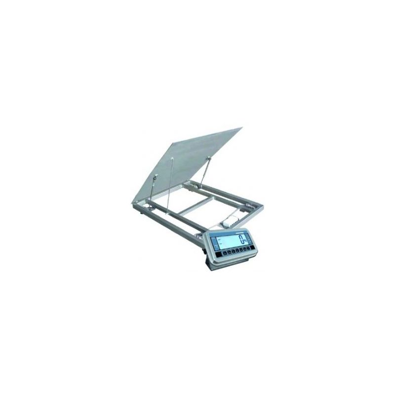 Plateau : 1200 x 1200 mm- Portée: 1500 kg- Précision : 500 g- Fonction : Brut, Tare, Net- Affichage : LCD 52 mm- Secteur : acier peint- Alimentation : Secteur et batterie
