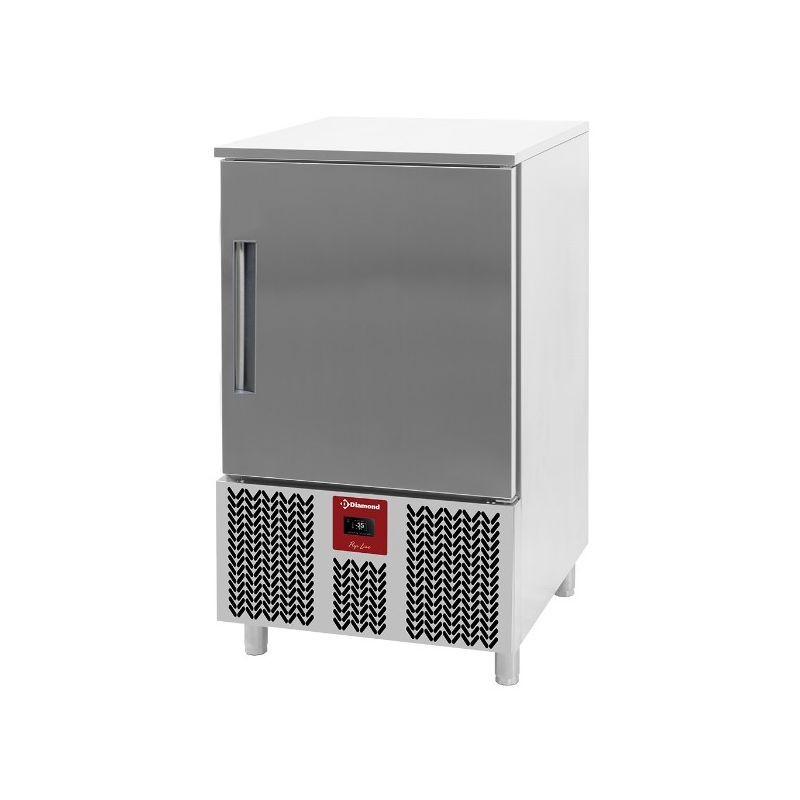 Régulateur avec afficheur lumineux de grandes dimensions, touches tactiles (IP65). Régulation des cycles de refroidissement ou congélation (avec fonction "Hard / Soft"), à temps ou à température (sonde à coeur). Mémorisation des alarmes HACCP, de divers programmes...... En liaison froide, la sécurité alimentaire passe par un principe de base: c.à.d. le passage de la température à coeur de +70°C à +3°C en 90 minutes (norme UK) ou +65°C à +10°C en 110 minutes (norme NF) et de +70°C à -18°C en 240 minutes (norme UK) ou +65°C à -18°C en 270 minutes (norme NF), les cellules Diamond vous garantissent le respect de toutes ces obligations.