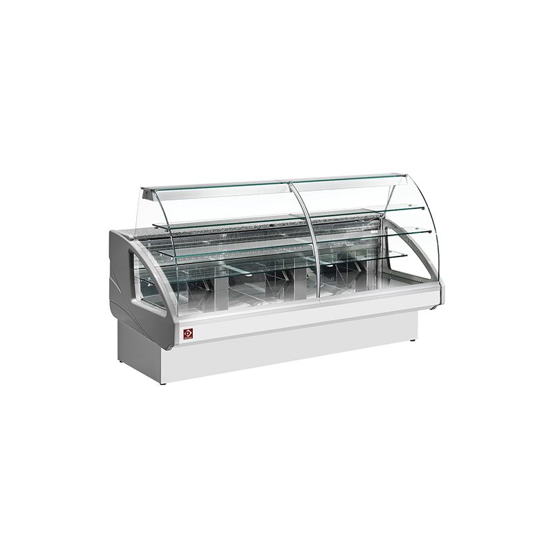 Conçu pour pâtisserie, boulangerie, viennoiseries, etc. Vitres frontales bombées rabattables, toutes en "verre trempé". Éclairage vitrine uniforme de type LED, " panoramique " excellente visibilité des produits. Joues en bois laqué, plan de travail en granit. Exposition en acier inox. 3 niveaux en verre et chargement exposition par tiroirs. Panneau de...