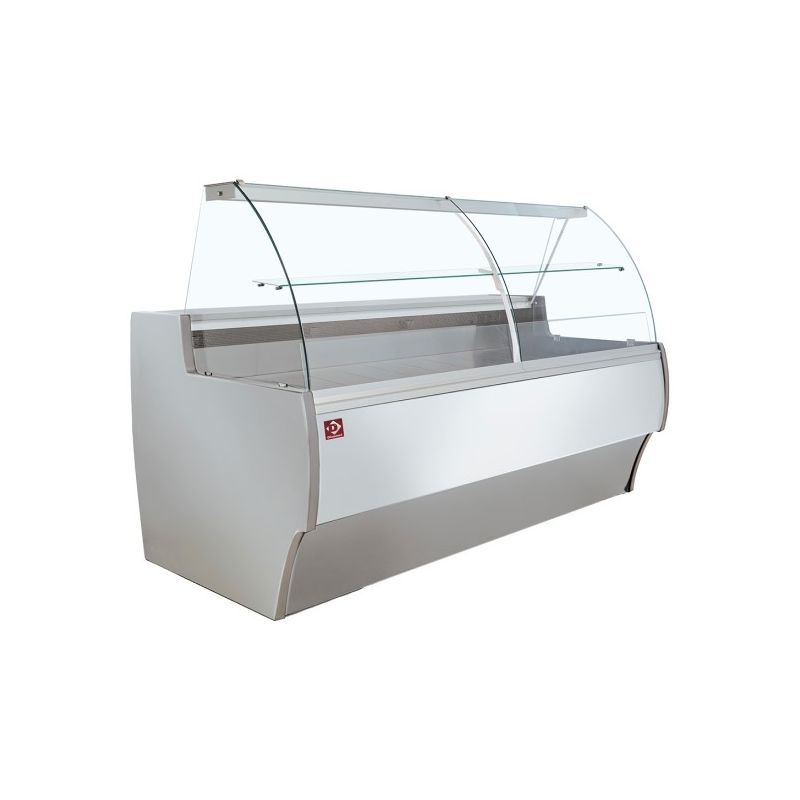 Comptoir vitrine réfrigéré à vitre bombée, ventilé, avec réserve