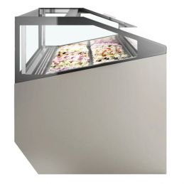 La Super Capri est une vitrine visuellement impressionnante pour gelato et crèmes glacées, avec un design élégant et contemporain.