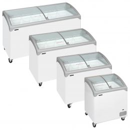 La gamme NIC de congélateurs à glace haut de gamme présente un superbe design tout en rondeurs, avec des couvercles coulissants bombés.