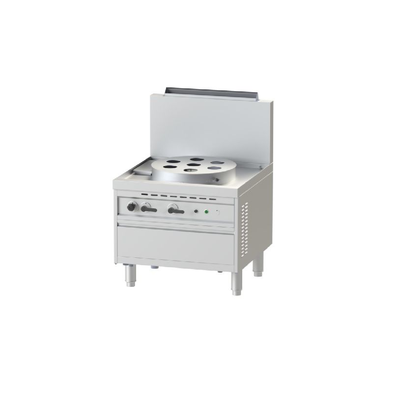 Dimensions (LxPxH) (mm) : 900x900x1200 Alimentation : Monophasé Surface de cuisson (mm) : Ø 600