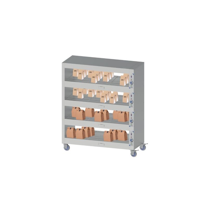 Dim: 1800x630x1788mm-Dim étagère: 1640x545mm-4 roues directionnelles donc 2 avec frein-Acier inoxydable-4 étagères chauffantes indépendantes-Grilles amovibles-Tension:230V-Puissance:5600w-Poids:156kg