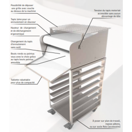 - Dim : 995x690x1670 mm - Production : 1200 p/H-tf - Largeur : 750mm - Laqué - Tension : 230V - Puissance : 0,55Kw - Poids : 258 kg