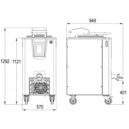Il possède 2 sorties : le robinet supérieur correspondant au niveau de sécurité (pour conserver un minimum de levain à rafraichir), la sortie inférieure permettant de vidanger complètement la machine.