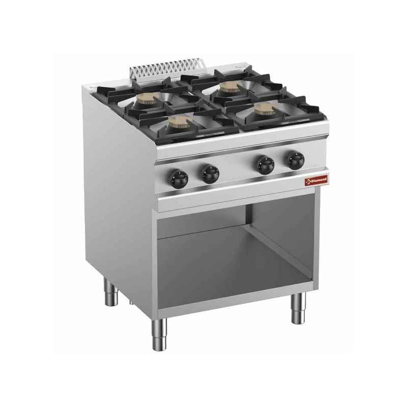 Top embouti, brûleurs à feux vifs en fonte traitée étanche, couronne en laiton (haut rendement).