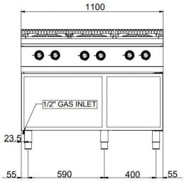 Acier inoxydable Efficacité énergétique, brûleurs haute performance Feux vifs 2 x 3,7kW et 2 x 5,5kW Four GN 2/1 puissant 8kW Pieds réglables