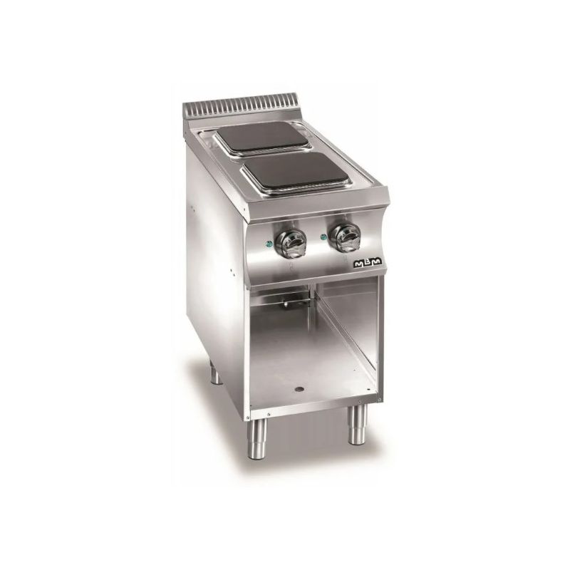 Ce réchaud 2 plaques électriques carrées sur baie libre est idéal pour restaurateurs ne disposant que d'un espace réduit dans leur cuisine professionnelle.