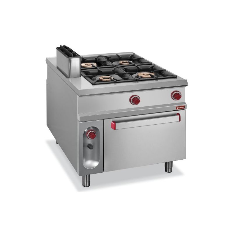 Dimensions : 700x700x850 mm Puissance totale (kW) 15 Dimensions four : 560X660X310 mm Nr. Plaque gaz 9 kW 1 Four gaz (kW) 6 Poids (kg) 116 Volume (m3) 0,8 1 plaque coup de feu Veilleuse