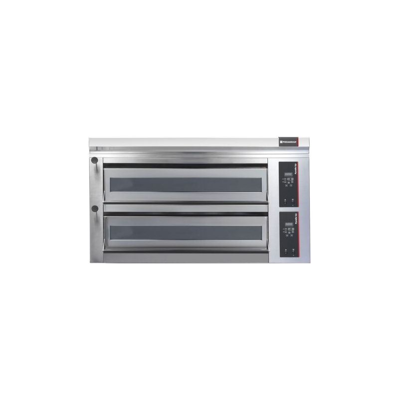 Dim : 1100x1300x777 mm - Capacite et Production : 2 Pizza de 30 cm ( 30 p/h ) - Ouverture de la bouche 350 mm - Potentiel bois : 19 Kw - Air de combustion : 124 m³/h - Temperature des fumees