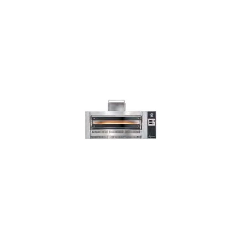 Dimensions:1860*2100*1800mm Capacité: 10 pizza de Ø300 mm Productivité: 150 pizza Ø300mm/h Consommation:5-6kg/h Puissance thermique: 40 kW Air de combustion: 175 m3/h Poids: 1700kg