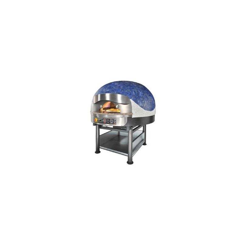 Dimensions : 1450*1520*1860 mm Capacité : 4 pizza de Ø300 mm Productivité : 60 pizza Ø300mm/h Consommation : 3-4kg/h Puissance thermique : 22 kW Air de combustion : 160 m3/h Poids : 950 kg