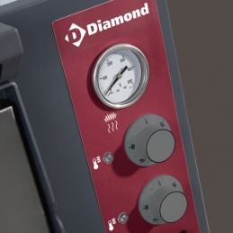 . Chauffage par résistances électriques, blindées, positionné en dessous du sol et sur la voûte de la chambre, régulation par thermostat (50 à 450°C), thermomètre analogique et thermostat de sécurité de série.
