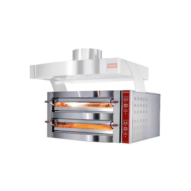 Control digital - Ouverture de porte vers le Haut - Dim externe : 1460 x 1323 x 390 mm - Dim interne: 1136 x 1088 x 100 mm - Capacité : 9 pizzas ø 35 cm ( 72 Pizzas / h ) - Capacité : 4 Pizzas ø 45 cm ( 20P/h ) - Capacité : 4 plaque de cuisson de 600
