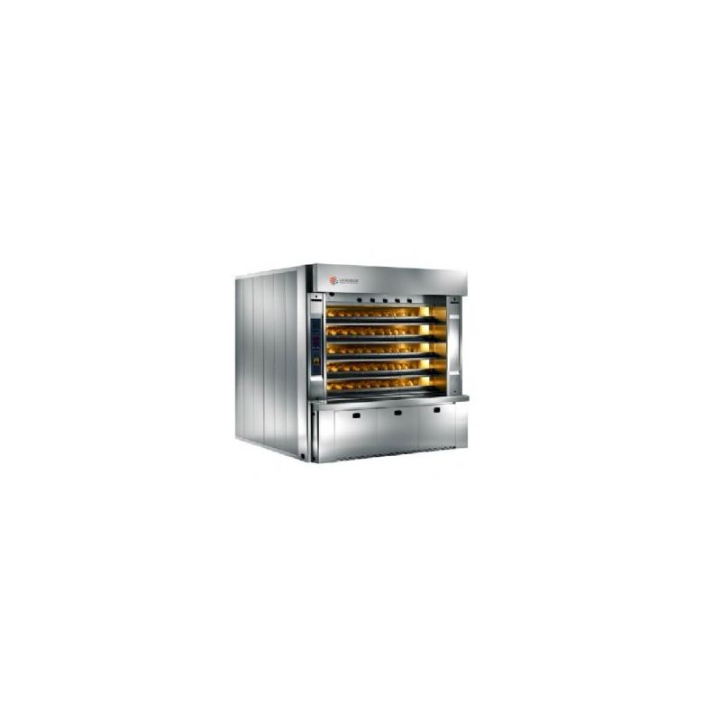 L'homogénéité et la qualité de la cuisson, ainsi que l'extraordinaire vitesse de changement de température, sont le résultat de la technologie appliquée au système de cuisson traditionnel des fours à vapeur à tube annulaire. Pour obtenir des caractéristiques techniques spécifiques, ce principe est appliqué avec succès dans les fours à vapeur à tube circulaire FOKUS. Une cuisson douce et précise avec une excellente poussée du brûleur à l'arc et un réglage rapide de la température permettent à ce modèle de tube circulaire sans pièces de construction avec des tubes et des conduits de brûleur en acier inoxydable à haute température d'être au sommet de la gamme. Les fours sont recommandés pour la cuisson de tous les types de pain. composé de 3, 4 et 5 chambres avec portes; Surfaces de cuisson entre 8m2 et 18,5m². Les générateurs de vapeur sont placés en contact direct avec le flux de chaleur pour assurer un excellent volume de vapeur. C'est une alternative valable aux fours à convection. Disponible dans les versions avec brûleur fioul ou gaz. Le chargement et le déchargement peuvent être effectués par un élévateur et un convoyeur à bande.