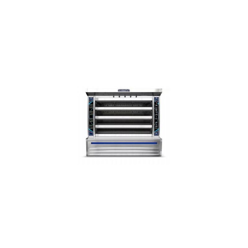 Idéal pour la boulangerie et la pâtisserie - Dimensions ext: 1170 x 1130 x 1665 mm - Dimensions int: 3x 845 x 825 x 300 mm - Capacité : 3x 2 plaques 400 x 600 mm - Température maximale : 350°C - Puissance : 10.4Kw - Tension : 400V 50Hz ~ 3N - Poids net : 690kg - Armoire réchauffée et hotte en option