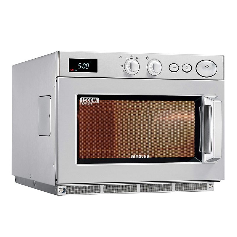 Magnétron professionnel, pour un usage intensif. Volume utile 26 litres, dimensions internes: 336x349xh225 mm. Puissance restituée 1050 W, 5 niveaux de puissances. Commande mécanique, minuterie. Réalisation intérieure et extérieure en inox. 1080 W 26 L 1.6 kW 517x412x297mm