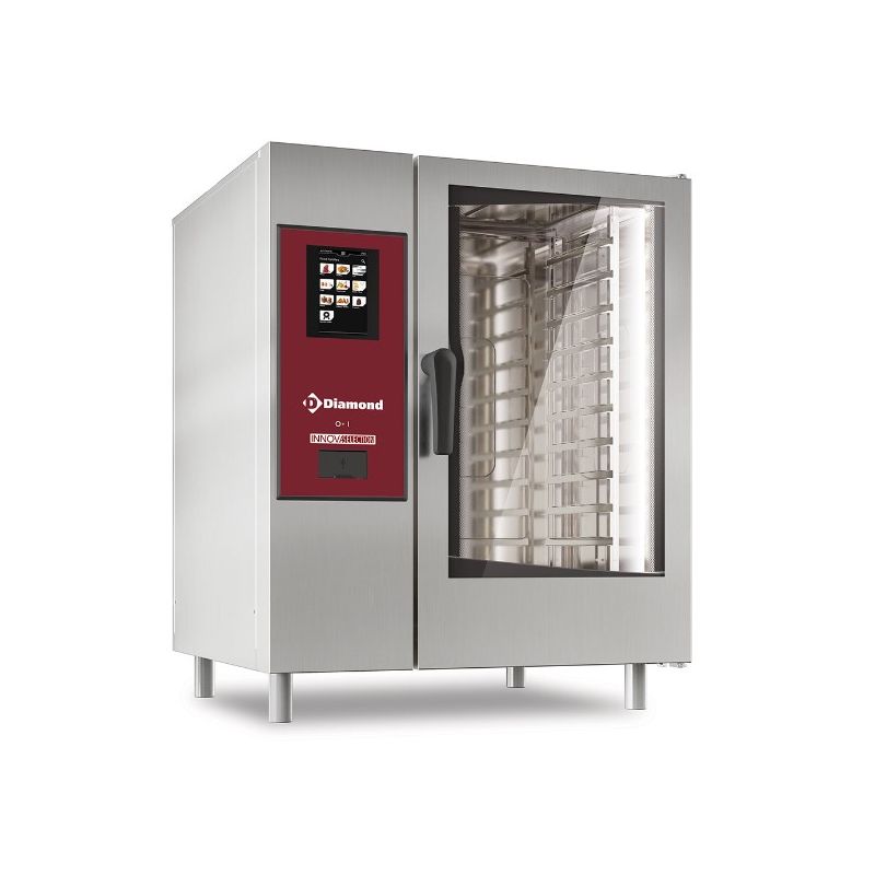 Porte à double vitrage: poignée ergonomique et athermique, fermeture automatique avec sécurité évitant toutes ouvertures accidentelles, récupérateur de condensation intégré dans la porte, vitre intérieure montée sur charnières, facilitant le nettoyage garantissant une hygiène parfaite. Une circulation d'air entre les vitres garantit une meilleure isolation thermique. Micro-interrupteur pour l'arrêt du ventilateur lors de l'ouverture. Chauffage gaz: par brûleurs pulsés et échangeurs de chaleur rainurés (augmentent l'efficacité et permettent d'économiser jusqu'à 20% de la consommation de gaz et une réduction de 20% des émissions nocives.), vapeur par nébulisateur. Panneau de commandes "TOUCH SCREEN" avec accessibilité frontale, facilité et rapidité pour le SAV, indice de protection IPx5 (contre les jets d'eau à la lance).