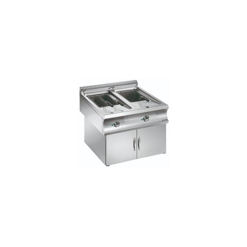 - Panier 250x270xh110 mm - Paniers aux poignées athermiques. - Cuve emboutie à fond incliné pour une vidange sans résidu d'huile. - Vidange par robinet tout inox avec système de sécurité.