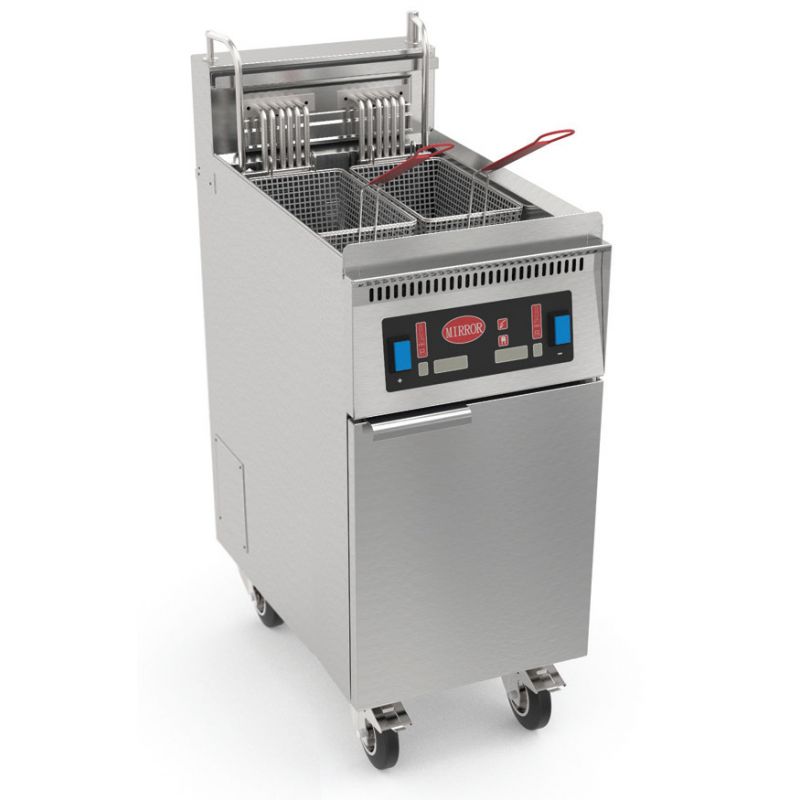 Dimensions (LxPxH) 1 cuve : 434 x 842 x 1185 mm Puissance par cuve : 14 kW Capacité par cuve : 18 L Pas de relevage automatique des paniers Poids net : 247 kg
