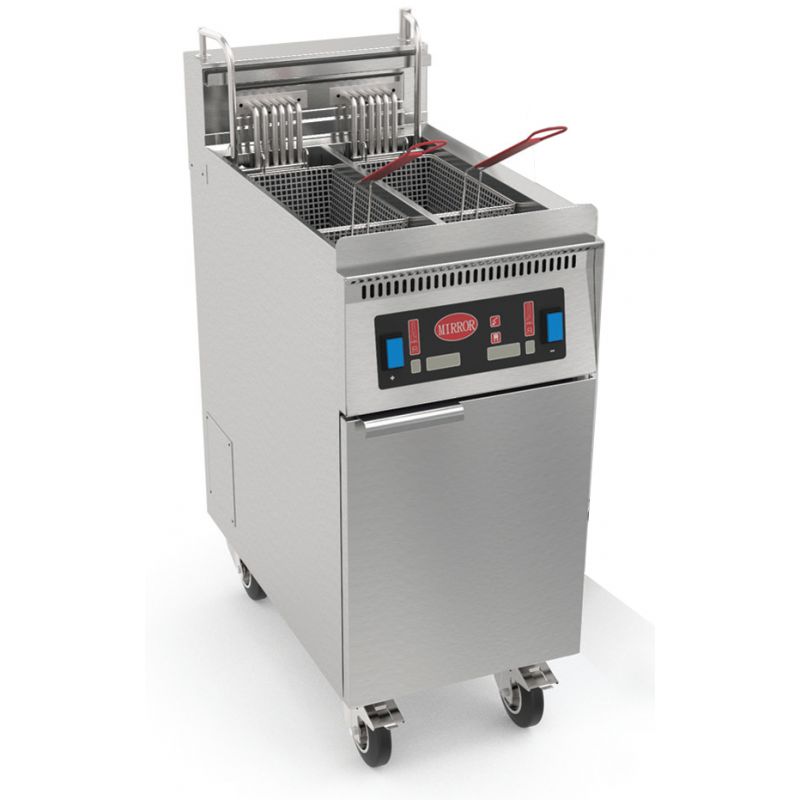 Dimensions (LxPxH) 1 cuve : 434 x 842 x 1185 mm Puissance par cuve : 14 kW Capacité par cuve : 18 L Pas de relevage automatique des paniers Poids net : 247 kg