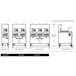 Dimensions (LxPxH) (mm) : 800 x 1100 x 870 Alimentation : Triphasé Puissance (W) : 20 400 Température (°C) : max 190 Capacité (L) : 13+13 Poids (kg) : 98