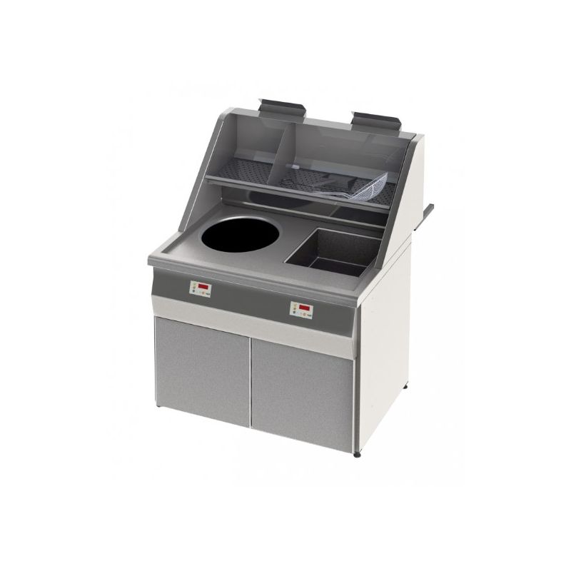 Dimensions (LxPxH) : 441 x 949 x 1118 mm Puissance par cuve : 14,4 kW Capacité par cuve : 27 L Relevage automatique des paniers : En option Zone froide pour prolonger la durée de vie de l’huile