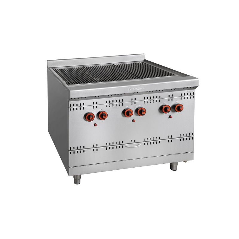 Grill professionnel à gaz pour griller tous les types de viandes et poissons simultanément, de forme hygiénique et pratique, avec une présentation excellente des aliments et sans mélanger les saveurs.
