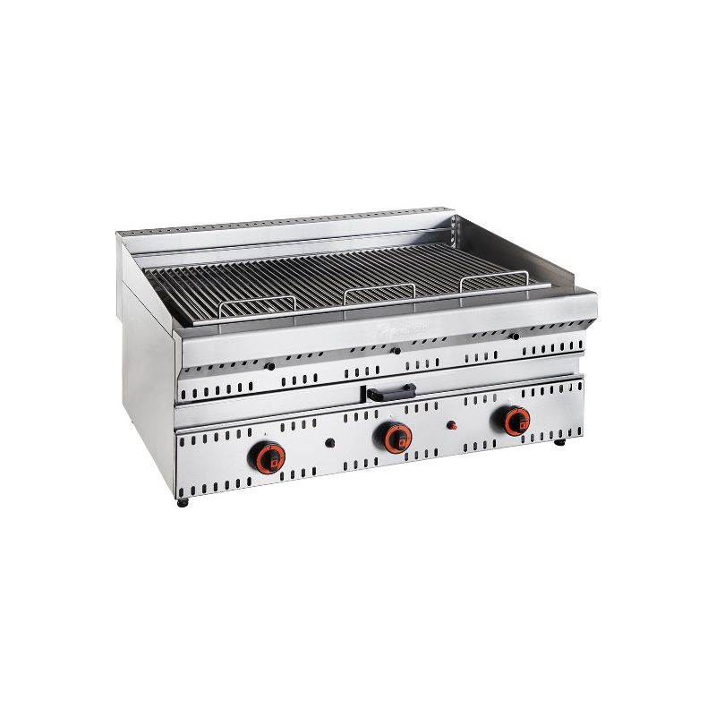 Grill professionnel à gaz avec déflecteurs économiques et rapides, ayant une distribution uniforme de chaleur sur toute la grille.
