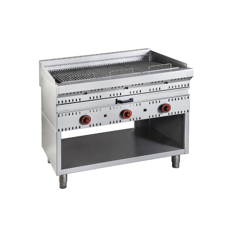 Grill professionnel à gaz avec déflecteurs économiques et rapides, ayant une distribution uniforme de chaleur sur toute la grille.