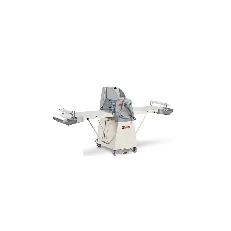 Ouverture des cylindres de 0.55 mm. Vitesse d'avancement 60 cm/sec (1 vitesse). Commandes à pédale (en option) laissant libre les mains de l'opérateur. Lamine tous types de pâtes (feuilletée, brisée, pâtes douces levées, brioches,...). Bandes en matière synthétique, avec du polyuréthane. Régulation avec précision de l'épaisseur de la feuille de pâte,...
