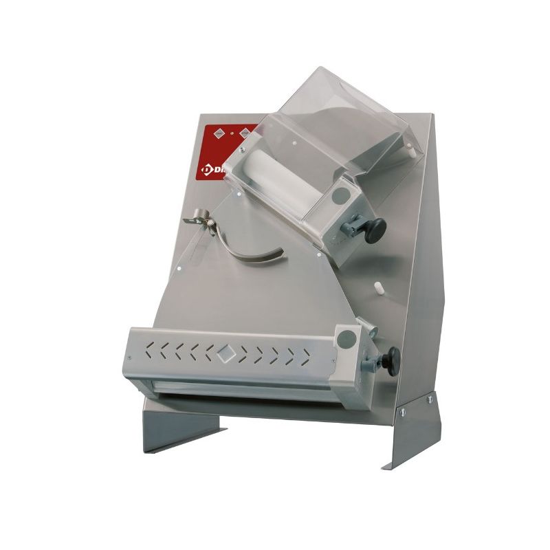 Laminoirs très flexibles et performants. Réalisation en acier inox AISI 304, carter arrière en tôle blanche. Laminage "à froid", pâte à pizza, sur platines (rouleaux parallèles). Les rouleaux sont en téflon (alimentaire), épaisseur réglable, protection rouleau supérieur en plexiglas, inférieur en inox. Commandes à basse tension 24 V, à touches...