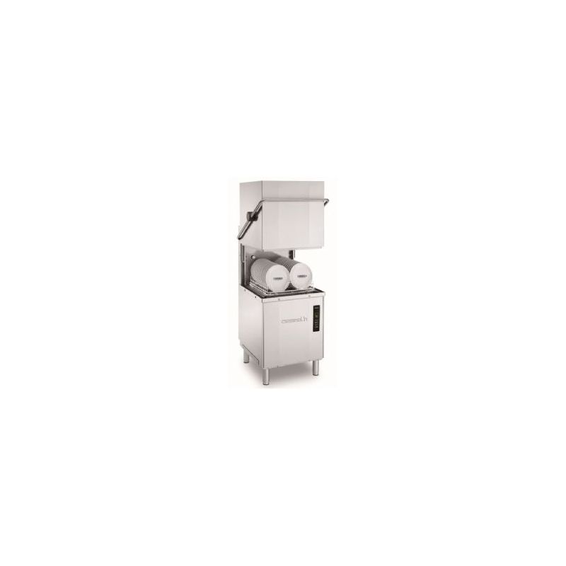 Acier inoxydable 18/10 Aisi 304 2 cycles de lavage automatiques Casier 50x50 Hauteur max pour les assiettes 420mm Consommation d'eau 3 litres par cycle 900 assiettes par heure Doseur produit de rinçage intégré