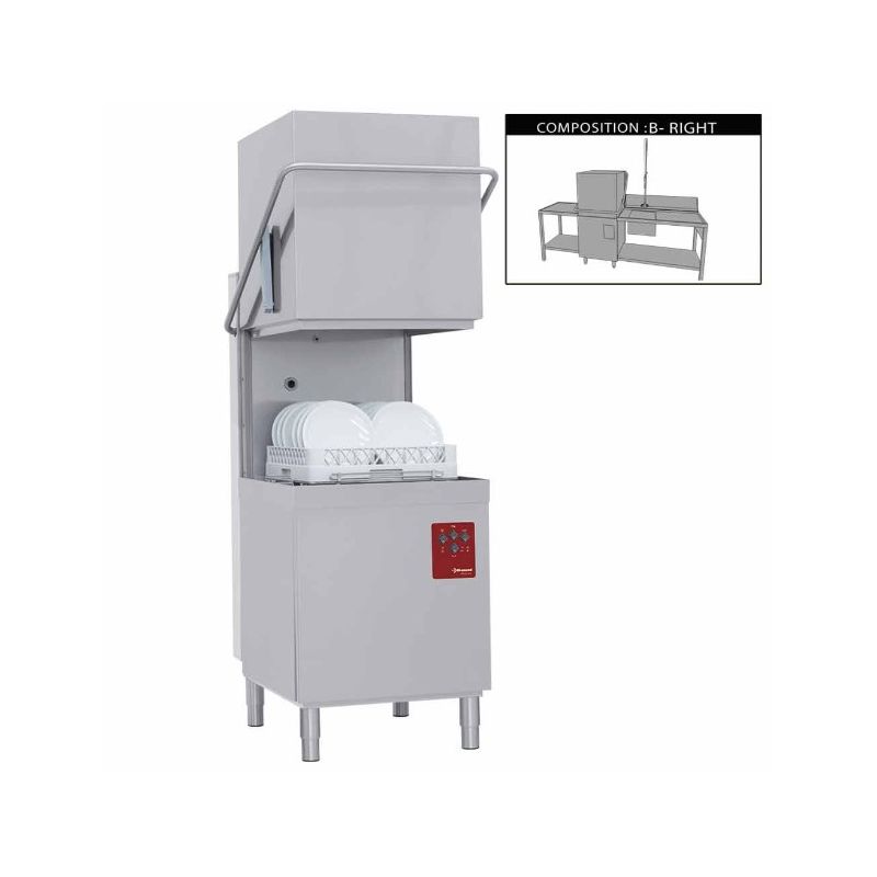 Dim:69x939x2155mm -Panier:50x50cm -Cycles(3):60/120/180 s -60-30-20 paniers/h -1320-660-440 assiettes/h -Avec pompe -Voltage:400V -Puissance:8.9W -Poids:200kg