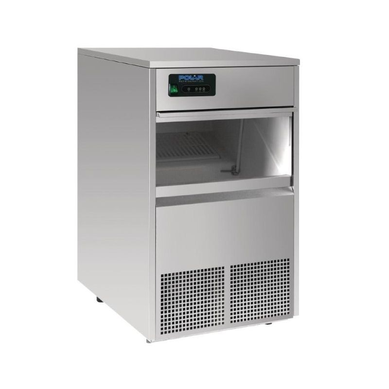 Machine à remplissage automatique conçue pour un approvisionnement constant et important en glaçons, idéale pour les bars et pubs. Fournie avec pelle et raccords au réseau d'eau.