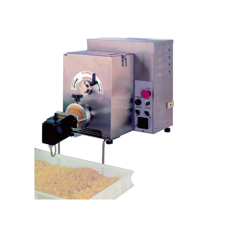 Entièrement réalisé en acier inoxydable. De base, elle permet le pétrissage de la pâte, ainsi que la production en automatique de pâtes "de blé dur" Couteau pour la coupe automatique des pâtes courtes ou longues. Dispositif variateur des vitesses standard. Livré avec 4 matrice