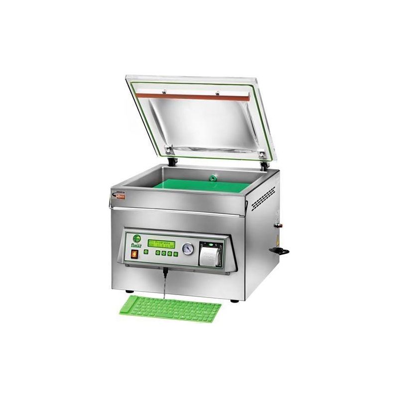Machine pour prolonger les temps de conservation des aliments, en gardant intactes les propriétés organoleptiques. Grâce à l’usage de spéciales sacs ou conteneurs, il est possible créer un niveau de vide, tel de empêcher la prolifération bactérien à baisse température. Meuble acier inox - cuve à l’intérieure en acier inox -couvercle en plexiglass - ouverture automatique du couvercle à fin du cycle - panneau des commandes mono programme avec possibilité de régler vide et soudure - barre de soudure avec membrane - pompe à huile DVP.
