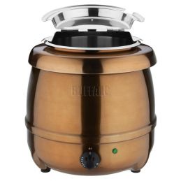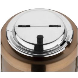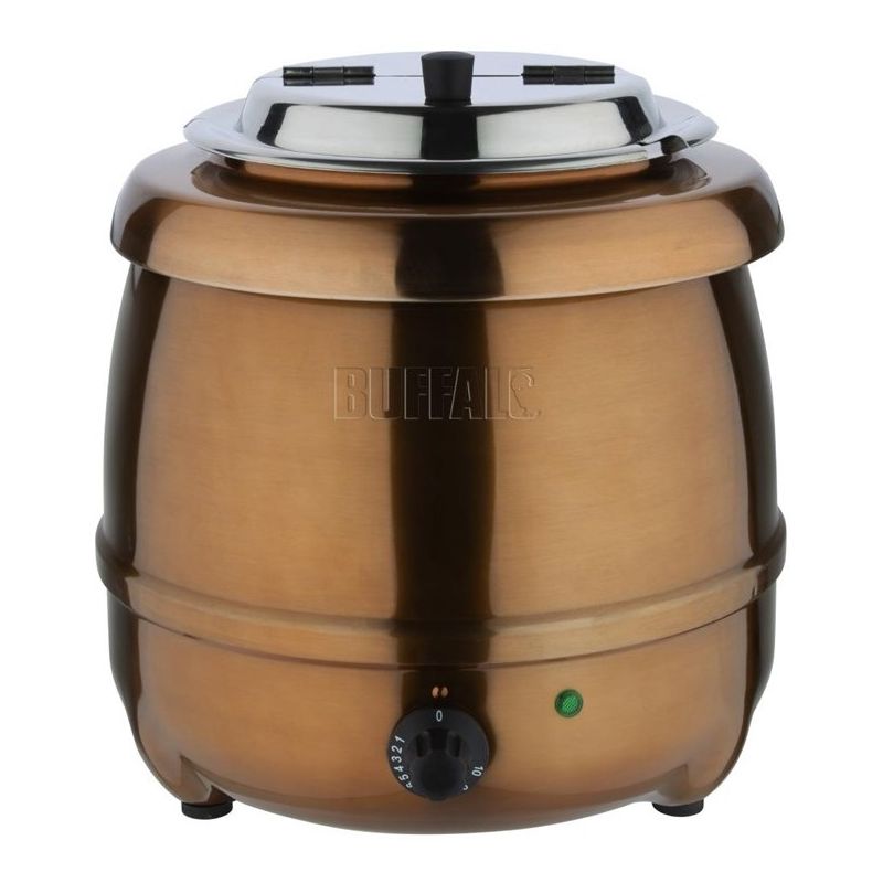Pour maintenir au chaud la soupe, du curry ou chili con carne etc. Pour les buffets self-service Couvercle en acier inoxydable avec ouverture facile à charnières Thermostat réglable Cuve intérieure en acier inoxydable amovible