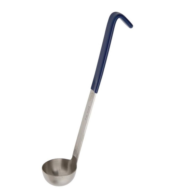 Cette cuillère de service à code couleur de Vogue est fabriquée en acier inoxydable durable et robuste dont la qualité est garantie pendant longtemps. Pour la distinguer des autres cuillères de service, cette cuillère de service a un manche bleu. Il dispose également d'un crochet pour une suspension facile.