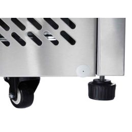 groupe TROPICALISÉ Classe climatique 5 Gaz réfrigérant R290 Sur roulettes Thermostat digital Intérieur et extérieur inox/ dos galvanisé Joints de portes clipsés Ressort de rappel de porte Angles arrondis Froid ventilé pour la table Froid statique pour la vitrine Plan de travail en granit 230 V Mono Température : +2°C/+8°C Capacité : 5 niveaux par...