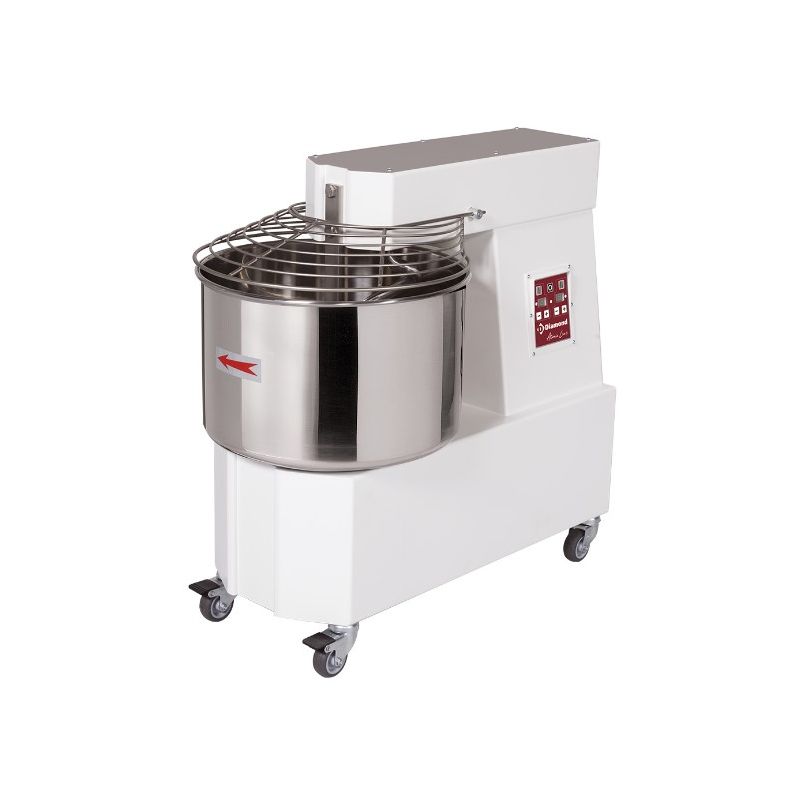 Les pétrins automatiques Diamond, vous permettront non seulement de sélectionner la vitesse, mais également de programmer le temps de pétrissage pour chaque vitesse, sans nécessiter ensuite votre intervention !!...... Ils s'adaptent ainsi à tout type de mélange. Commandes digitales très intuitives, faciles d'emploi. Livrés sur roues dont deux, munies de freins.