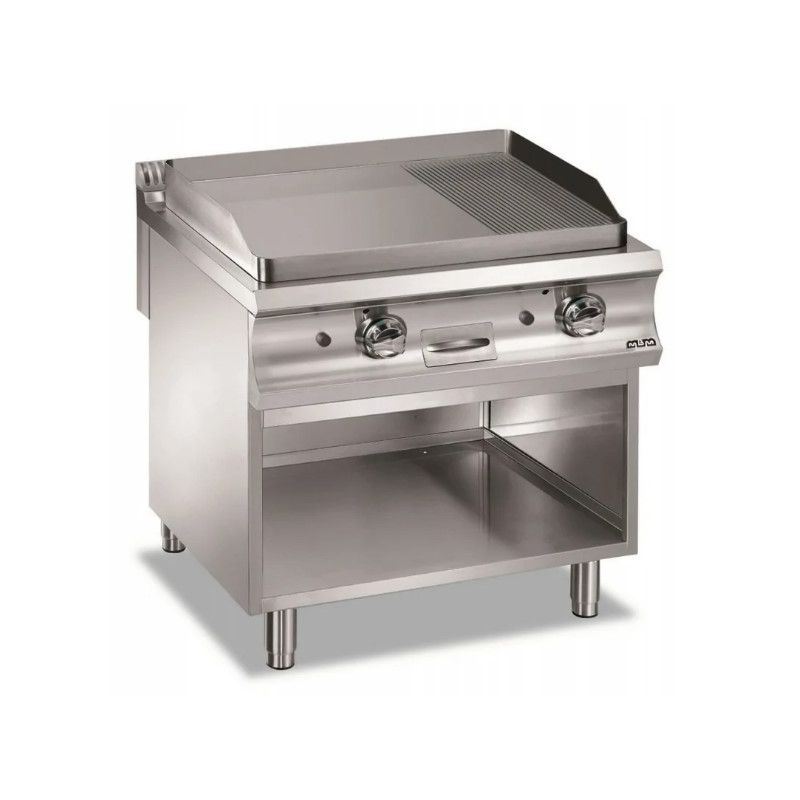 La gamme de plaques grillade DONIMA 700 est complète en matière de choix de plaques disponibles en plaques acier lisses, rainurées, mixtes de largeur différentes 1/2 module ou module entier électriques ou gaz avec régulation thermostatique de la température. Les plaque sont disponibles en acier martin ou chromées en version lisse et/ ou rainurée.