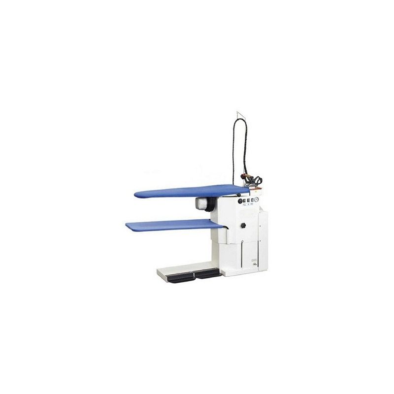 - Dim : 155 x 58 x 95 cm - Capacité : 5 litres - Plan de travail : 120 x 40 x 25 cm - Chauffage : électrique - Pression : 2,6 bars - Pédale de mise en marche - Réglage T°: thermostat