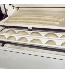 Dim : (LxPxH) 1540x1280x1325 mm - Dim Panier : 1360x140 mm - Encombrement au sol : 1655x1280 mm - Nbre de pâtons 350g / panier : 9 - Capacité max pâtons 350g : 360 - Nbre de pâtons 550g / panier : 5 - Capacité max pâtons 550g : 280 - Puissance : 0.12 kw - 3x230 / 400 V -50 / 60 Hz - Poids net: 370 kg