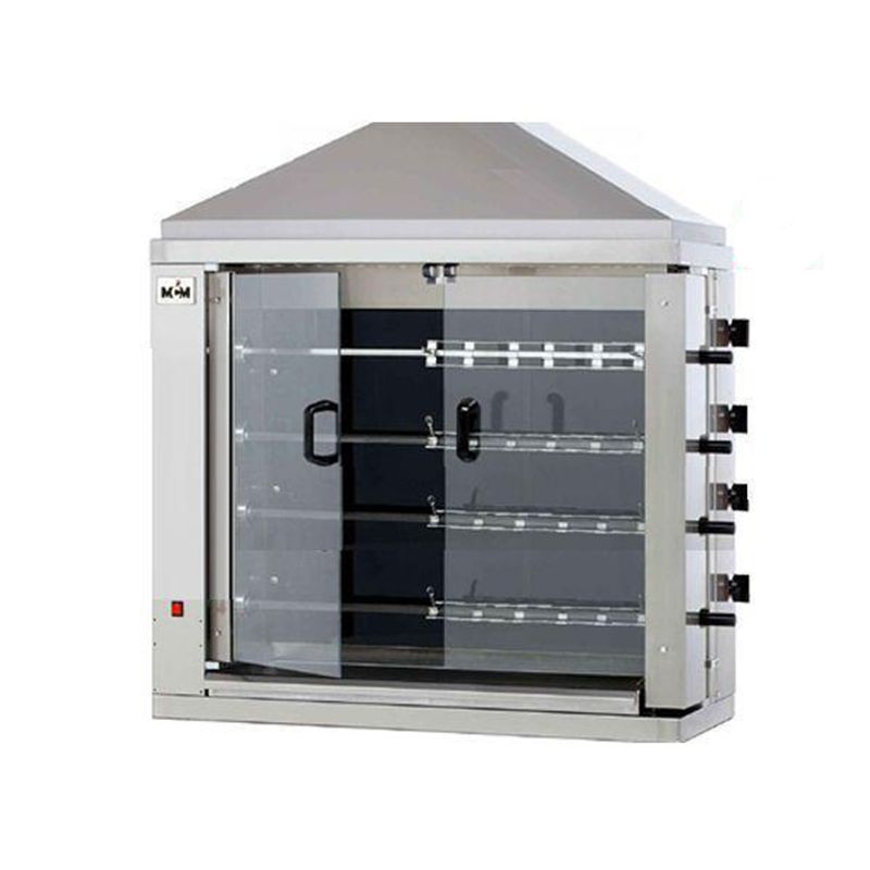 Dimensions (LxPxH) (mm) : 1320x460x860 Capacité : 12-15 poulets 1,7 kg Alimentation : 380 V Triphasé